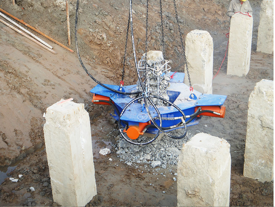 液壓破樁機截除:如灌注樁,預制樁等;從截樁頭成型形狀上分,可分為圓形破樁機和方形破樁機。破樁機在高鐵橋梁,工民建筑樁基工程中得到廣泛應用,一般方形截樁機適用于樁邊長250-650mm,可以滿足各類大型基礎施工的要求。