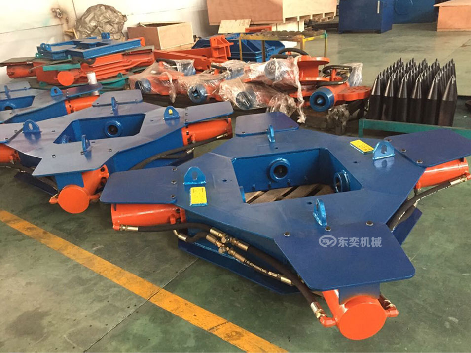 破樁機通過動力源給截樁機多個油缸提供壓力,油缸直接驅動釬桿,同時擠壓樁身,使樁頭截除。破樁機施工過程中,操作簡單,高效率,低噪音,低成本,適用于樁群施工工程中。破樁機采用高度模塊化組合,通過銷軸聯接模塊,可以通過不同模塊數量組合,截除一定范圍內直徑樁頭。